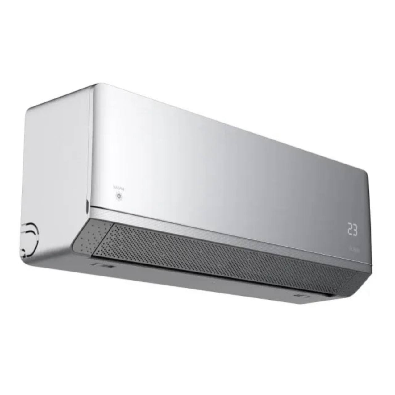 - Внутренний блок оснащен элегантным дизайном и доступен в цвете серебро.