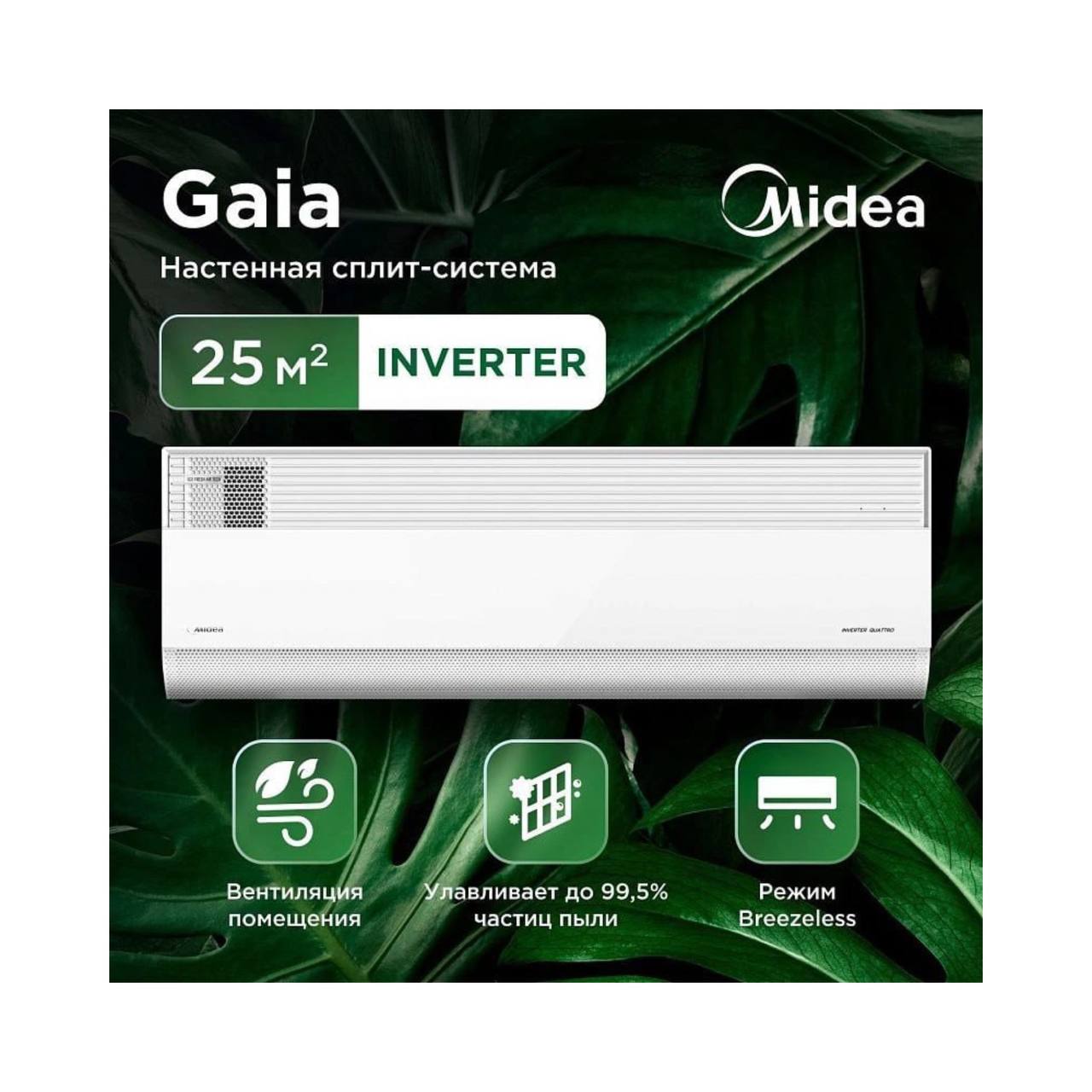 Серия GAIA представляет собой современные настенные сплит-системы с функцией активного притока чистого наружного воздуха. Ключевой особенностью является способность подавать свежую атмосферу прямо внутрь помещения, одновременно фильтруя её через высококачественный HEPA-фильтр класса H13, эффективно удерживающий мельчайшие частицы пыли, аллергены и загрязнения размером вплоть до 0,3 микрон.