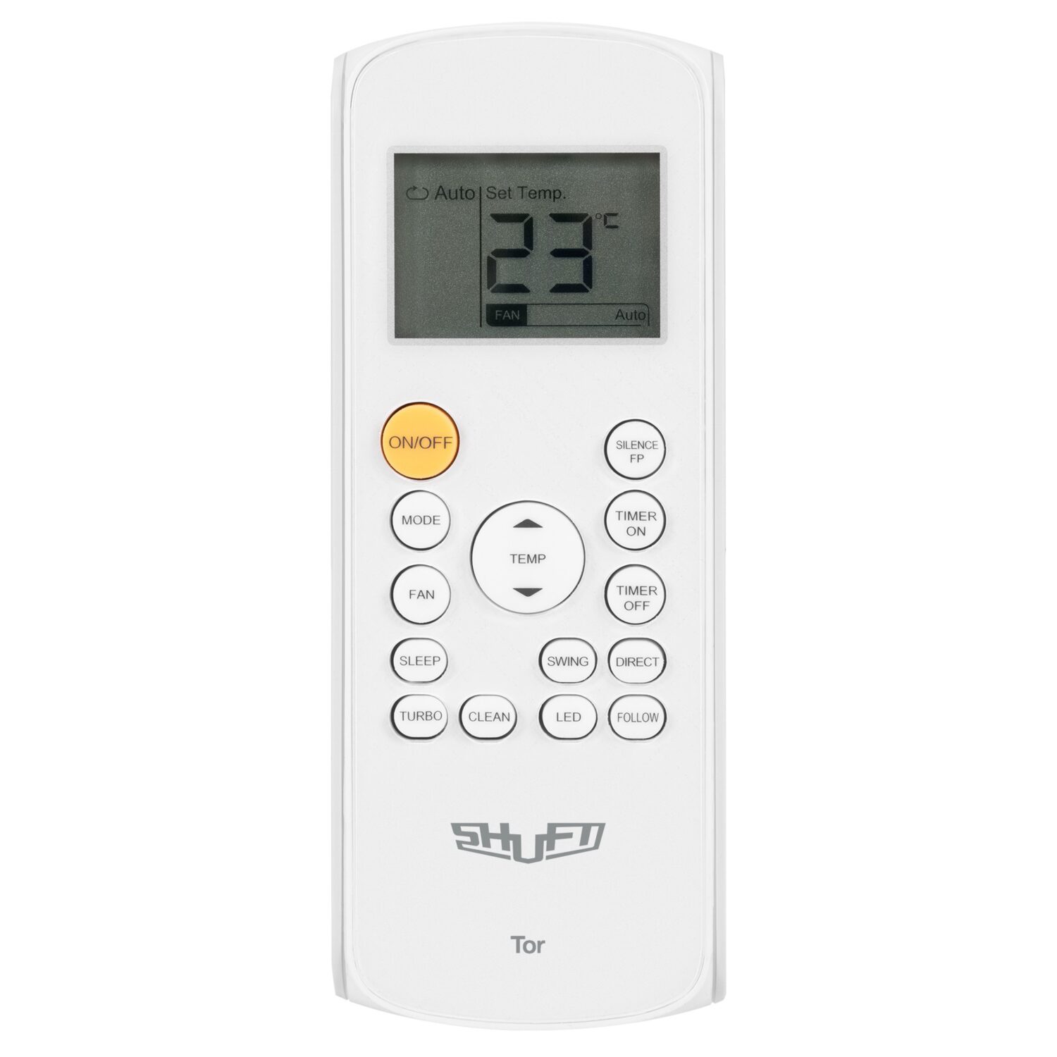 Сплит-система Shuft (Шафт) Tor SFTM-18HN8 имеет компактные размеры и эргономичную конструкцию. Наружный блок оборудован компрессором постоянной производительности, работающим на фреоне R32. Пульт ДУ входит в комплект поставки. Внутренний блок имеет съемный воздушный фильтр и скрытый LED-дисплей.