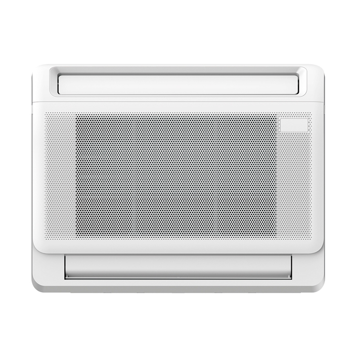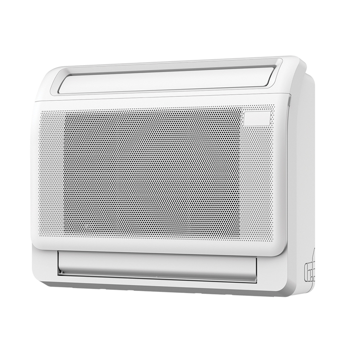 Блок консольного типа Midea MMFA2U-17HRFNX-Q(GA) в отличии от обычных настенных блоков можно размещать на стене ближе к полу. Особенно актуально для загородных домов, где нет возможности установить на стене или в помещениях с большими окнами. В конструкции такого блока предусмотрена подача воздуха как через верхние жалюзи, так и с нижней части корпуса.