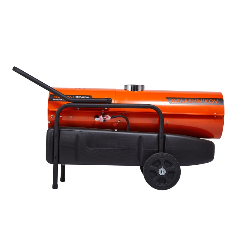 Промышленный нагреватель воздуха дизельного типа Kalashnikov (Калашников) KHDN-80 имеет специальный бак для топлива и систему подачи с помощью высокопроизводительного топливного насоса. Встроенные системы безопасности, например, от перегрева, контроль пламени, а также отключение в случае аварии, обеспечивают длительную и безопасную эксплуатацию.