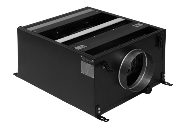 Установка идеально подходит для помещений до 300м2, исходя из высоты потолков в 3 метра, полуторакратного воздухообмена с учётом средней сети в 150 Па, также мы учитываем загрязнение фильтров.