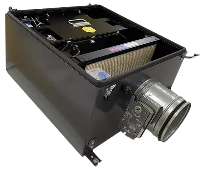Имеет 2 слота для фильтров. Стандартно установлен фильтр G4 + мощные дополнительные фильтры опционально: блок-вставка с усиленной фотокаталистической фильтрацией LED, Minibox.fko, фильтр тонкой очистки класса СARBON-EU9, фильтр абсолютной очистки HEPA-11).