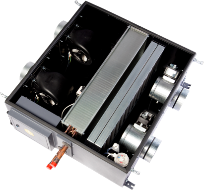 Приточные установки с водяным нагревателем устанавливают в основном в частных домах, таунхаусах, в помещениях где есть техническая горячая вода или своя котельная.