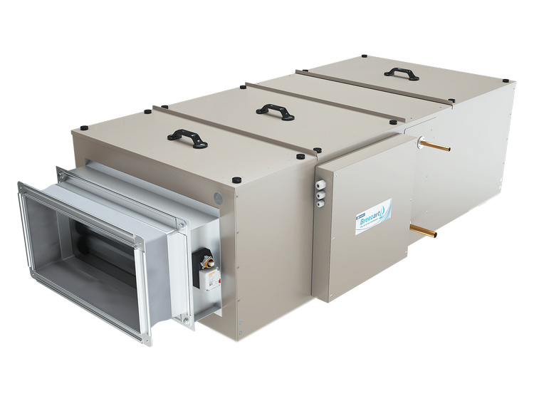 Вентиляционная установка с охладителем воздуха. Оснащается клапаном с электроприводом, цифровой автоматикой и пультом с цветным сенсорным дисплеем. Может управлять ККБ сигналом 0-10В или On/Off.